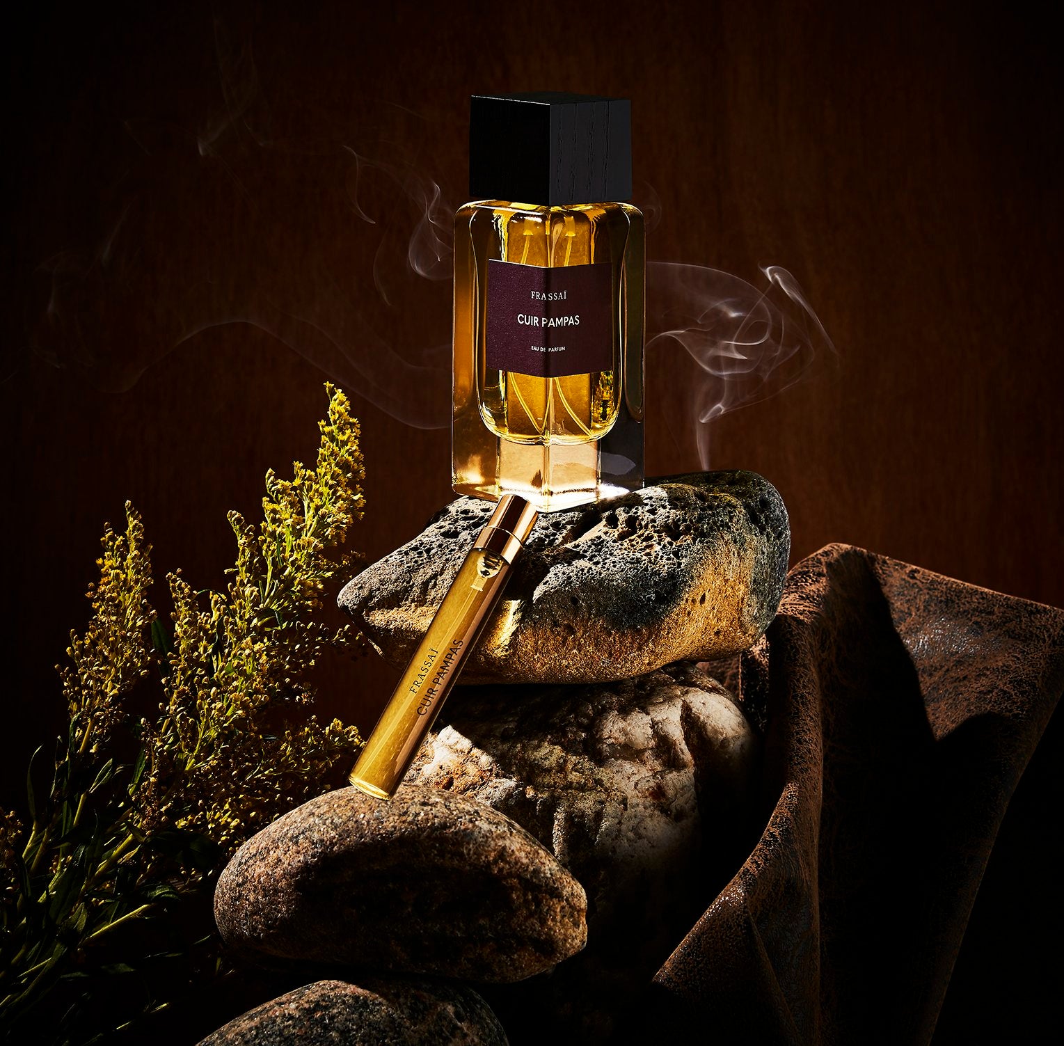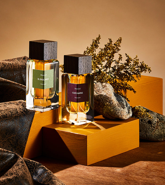 Cuir Pampas opens with an explosion of black pepper and leather, through which a smoky, fascinating vetiver works its way. The opening slowly develops further with sweetness of cistus, Argentinian mate (tea) and hay notes.