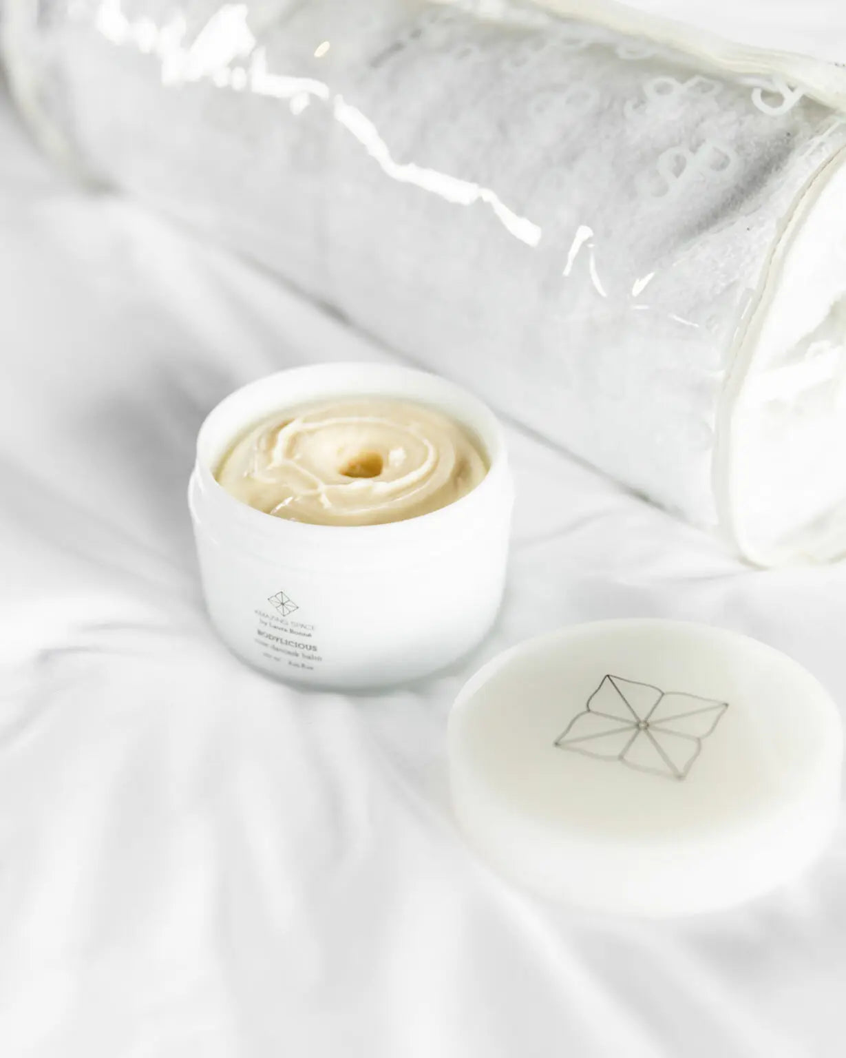 Een superfijne lichaamsbalsem die onmiddellijk in de bovenste laag van de huid smelt, te gebruiken na het baden. Voedende en hydraterende mangoboter met een hoog vitamine A-gehalte, essentiële vetzuren die de huid verfijnen en verstevigen, en verzachtende kamillebloem. De geur is delicaat, damastroos.